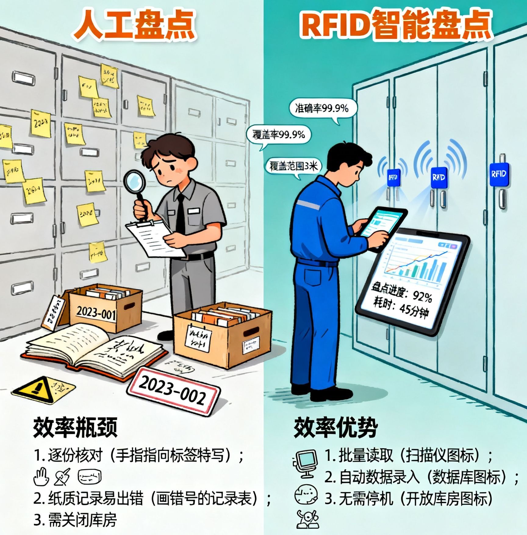 档案库房库存盘点:人工盘点 vsRFID 智能盘点的效率差异