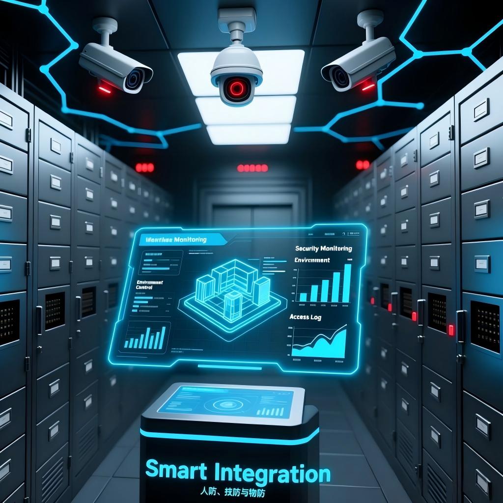 智慧库房构建“周界+通道+库区+案卷”的四级纵深防护体系。库房周界采用防入侵探测技术;在库房通道及内部,部署具有人工智能算法的视频监控,可自动识别人脸、行为异常(如长时间徘徊、越界)、遗留异物等,并即时报警。
