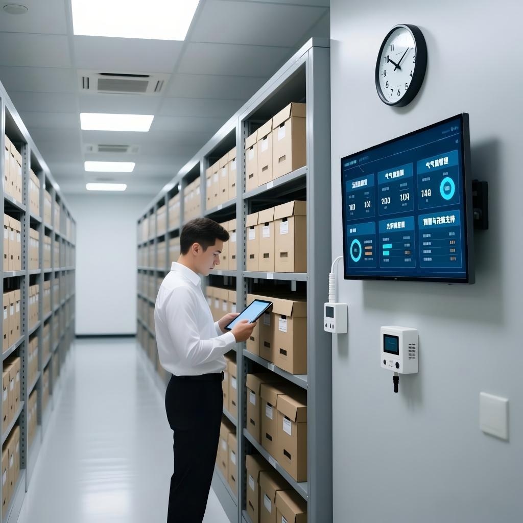 这是体系的基础。在库房内部署覆盖全域、多种类的物联网传感器节点,连续监测温度、湿度、颗粒物、挥发性有机物、光照度、漏水、烟感等参数。传感器网络通过无线或有线方式将数据实时汇聚至监控平台,实现对环境状态的毫米级、全景化感知。
